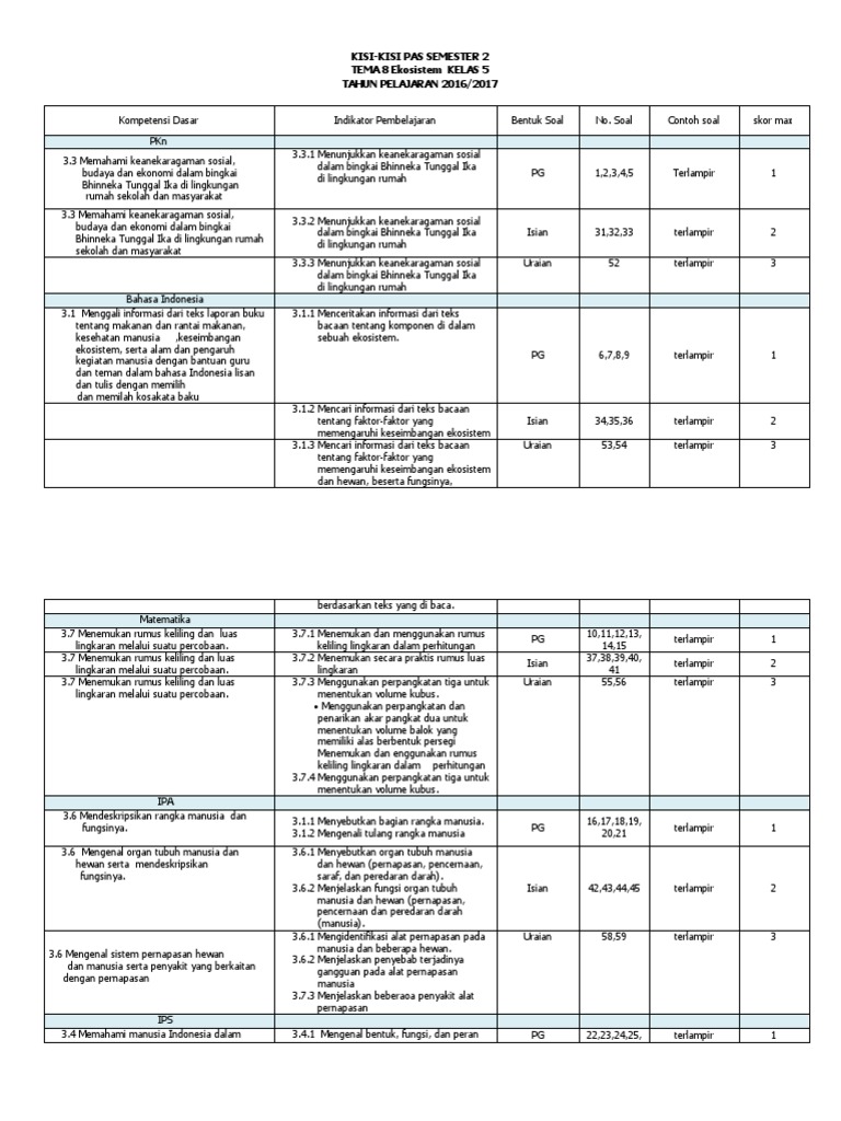 Kisi kisi soal ph kelas 5 tema 3 k13 revisi 2020.