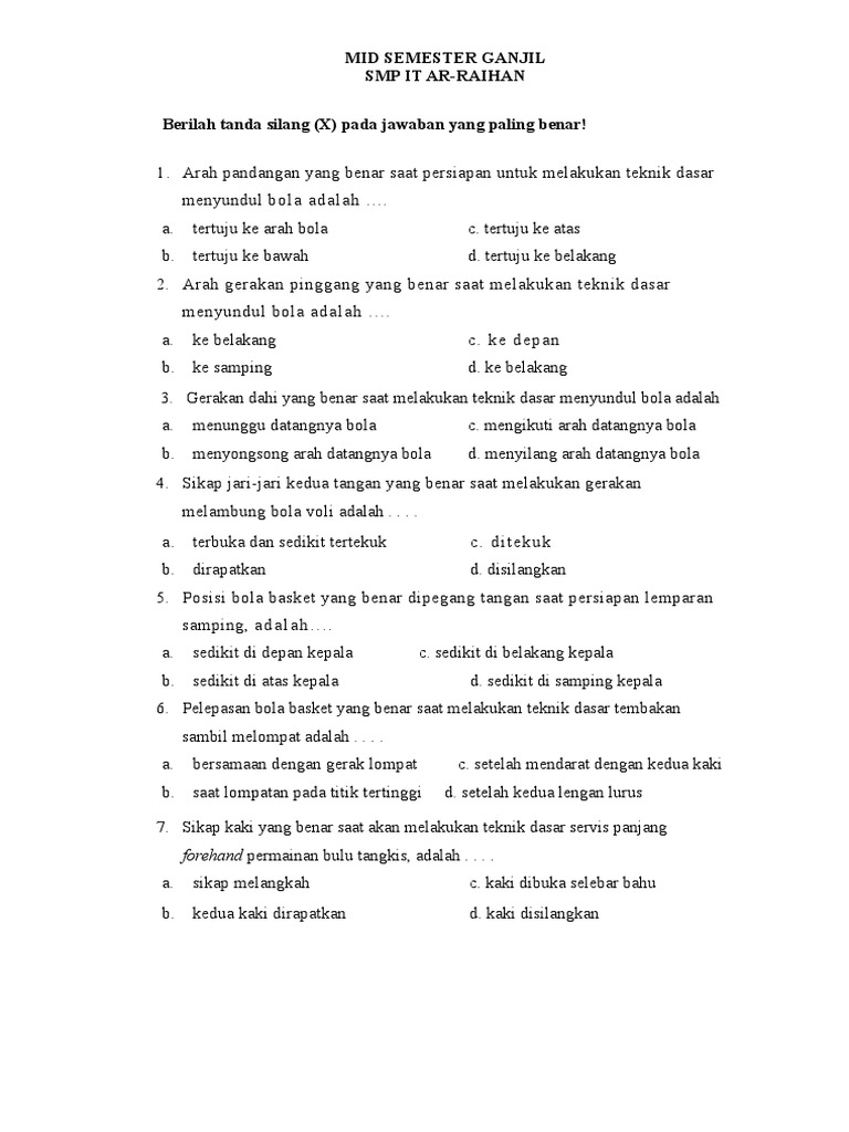 Sikap otot leher yang benar saat melakukan tehknk dasar gerakan menyundul bola sepak adalah. We did not find results for: Maybe you would like to learn more about one of these? Check spelling or type a new query.