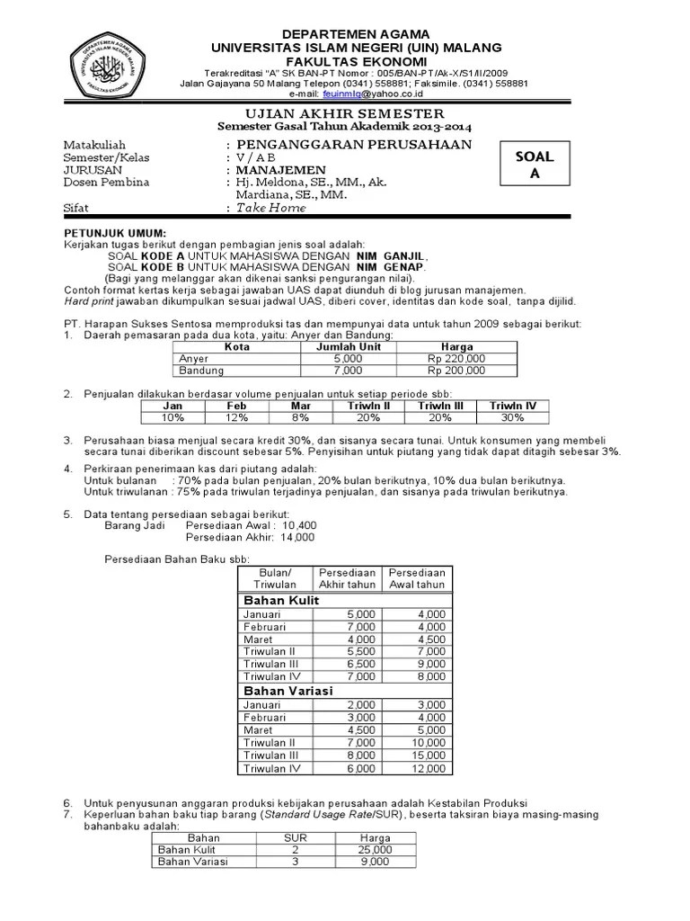 Soal Dan Jawaban Uts Manajemen Keuangan 1 : Contoh Soal Uts Aplikasi Basis Data Semester 2 Bsi - Management nama muhammad irfan azka nim 12010116130223 kelas dosen pengampu drs.